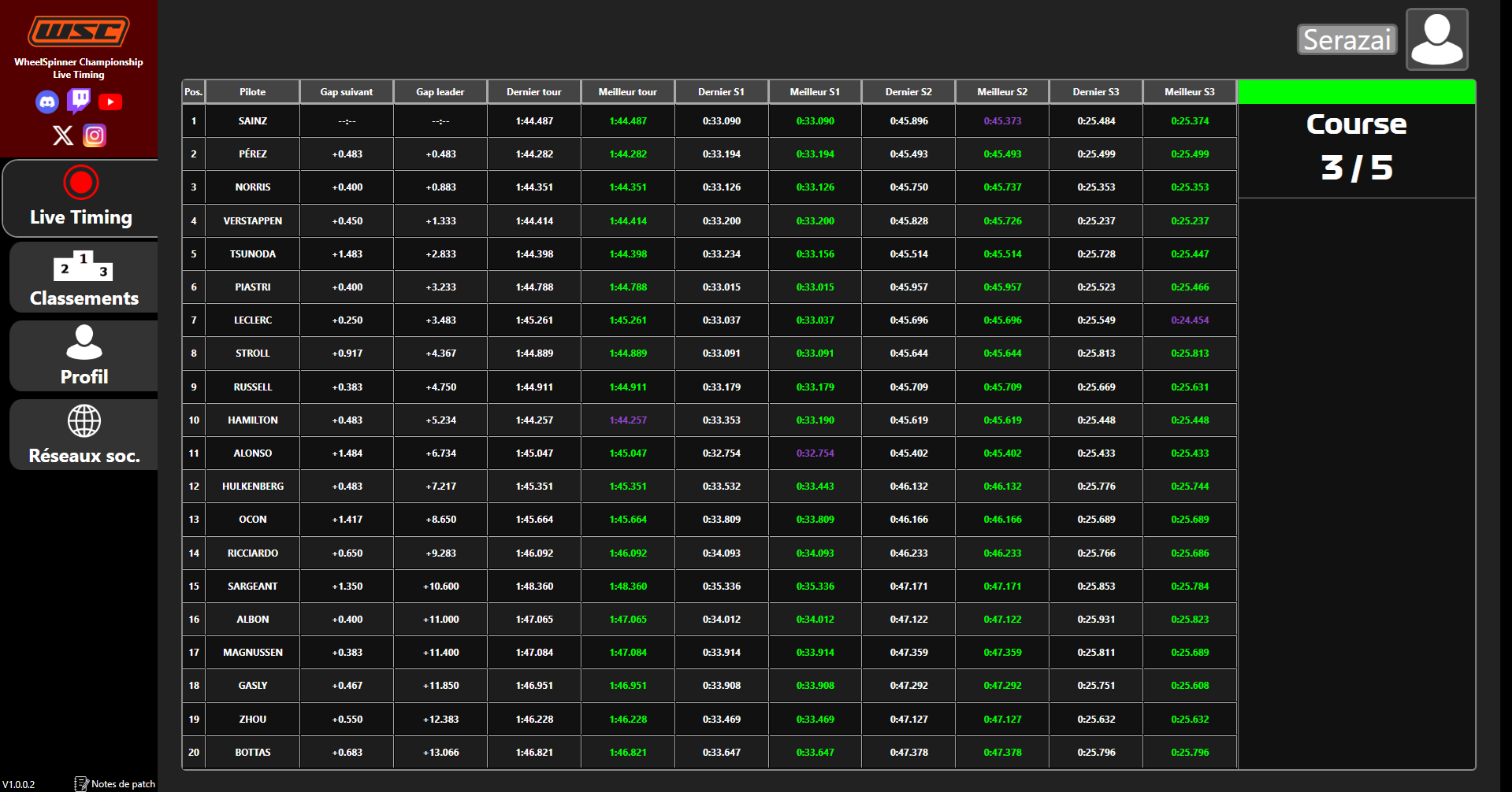 - Un outil de "Live timing" permettant à tous les pilotes de pouvoir suivre les données chronométriques (et autres) importantes pendant les courses du WSC