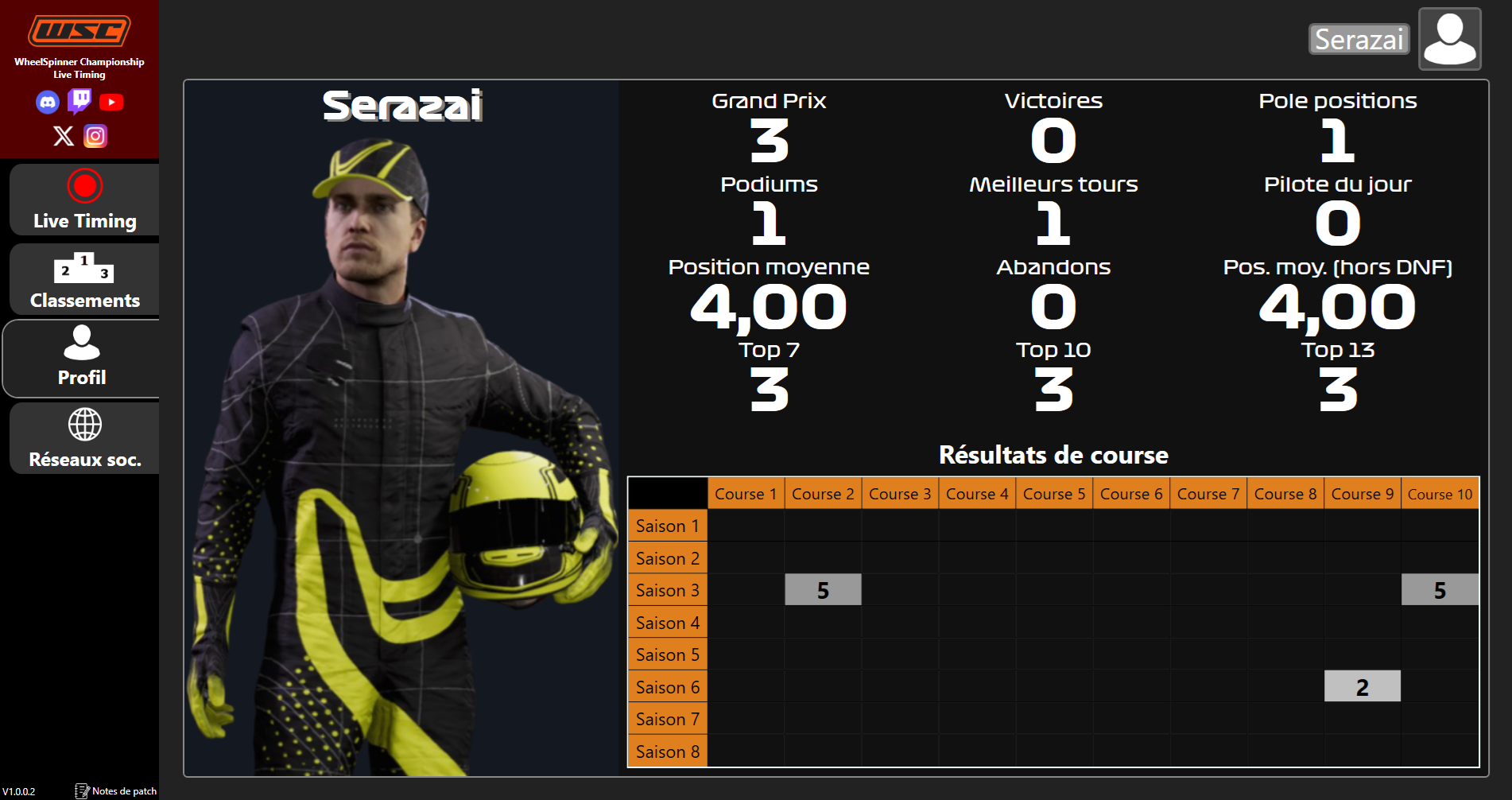- Un suivi de votre carrière de pilote WSC, vous permettant de visualiser nombreuses statistiques, historique de résultats et autres